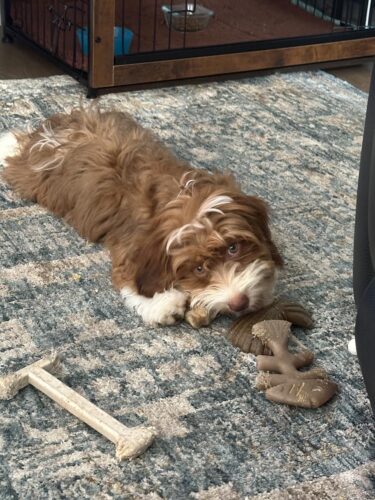 If you ask Dino about his favorite hobbies, he’ll put play on top of the list along with running, jumping over obstacles and exploring. He has a passion for eviscerating stuffed toys and saving the world from squeakers. Yes, he considers himself a top notch canine surgeon!