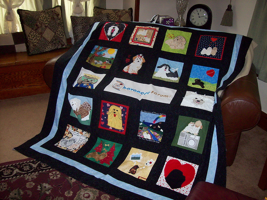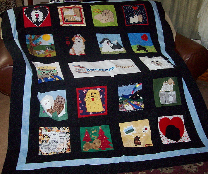 This incredible quilt was made by members of the Havanese Forum. And generously donated to Havanese Rescue Inc! It measures approximately 66" x 78"
