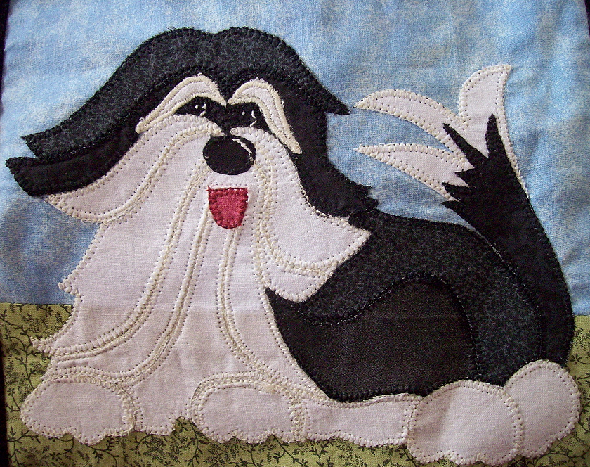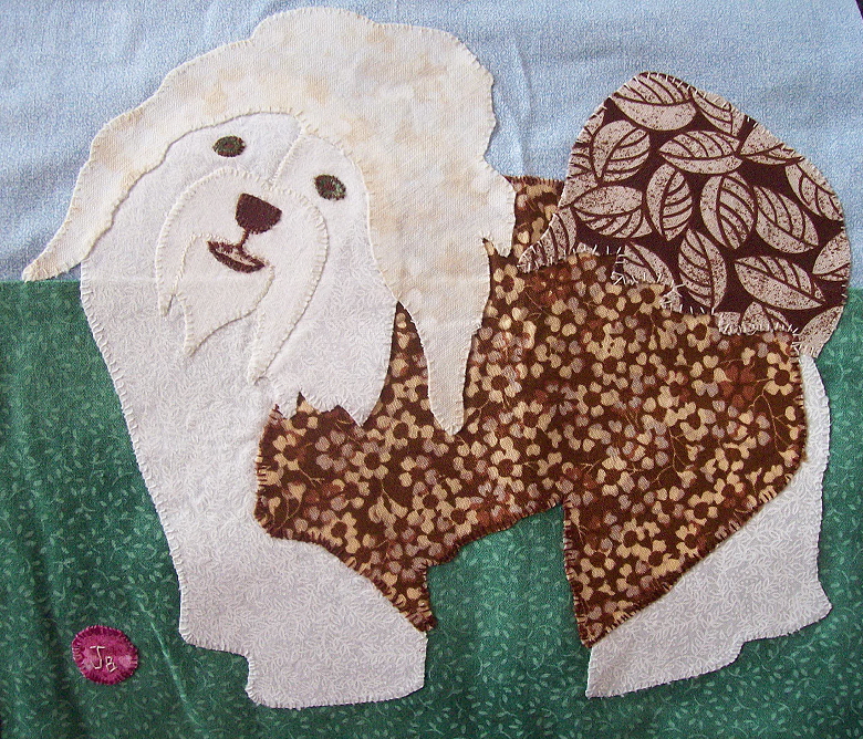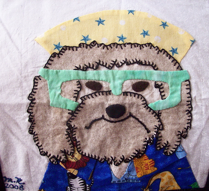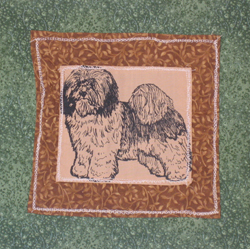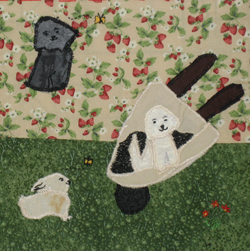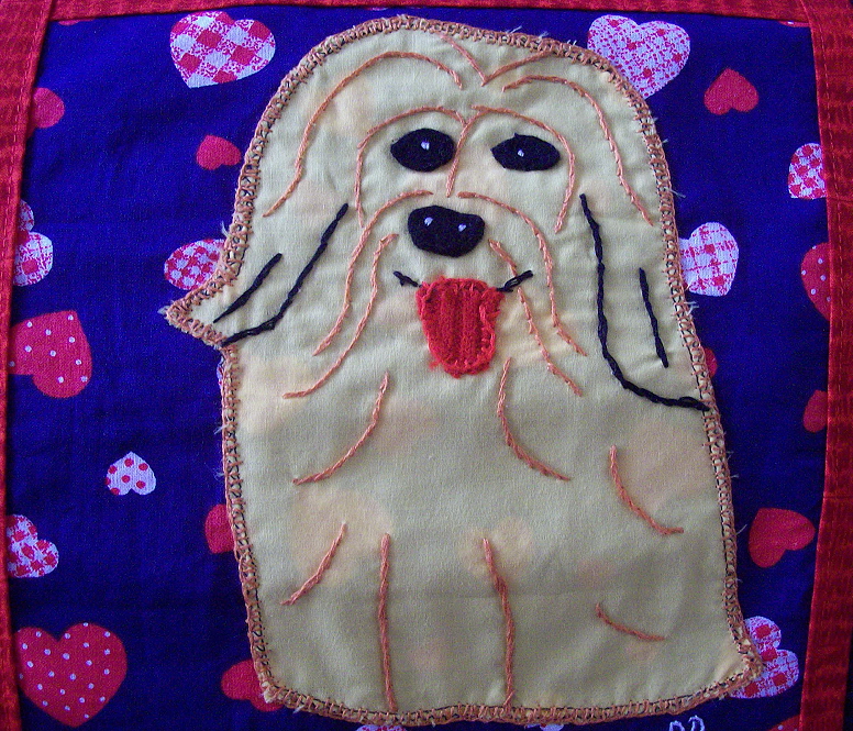 The 2008 Havanese Rescue Inc quilt is titled "Havs Make My World Go Round." This quilt is dedicated to Susan A. Nelson (1944-2007). Sue was a true pioneer in the Havanese world and participated in many aspects of dog sports with her dogs. She also gave her time and knowledge unselfishly to many newcomers to the dog world. She is missed by many. Below are photos of the individual squares comprising this quilt. It was pieced by Nancy Holmes.