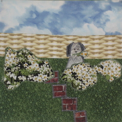 Gardening nourishes the soul as well as the body. Many of us find that whenever we're in our gardens, we're accompanied by our hairy helpers, our Havanese. The 2007 HRI quilt was created with this theme in mind. "The Garden Helpers Quilt" is pictured below. From the picket fence surrounding the beautifully creative blocks, this quilt was a favorite of many.