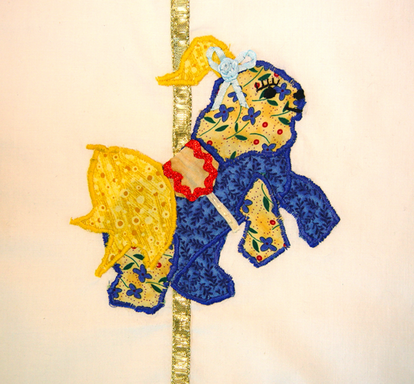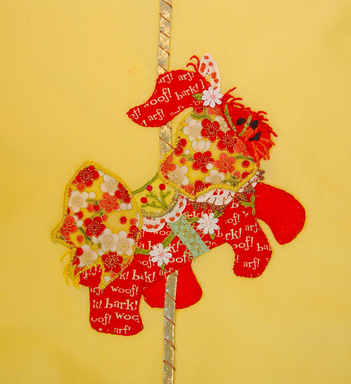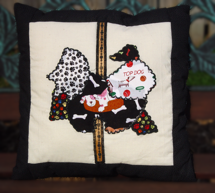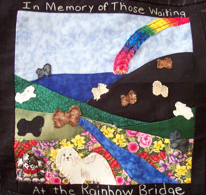 Our beautiful wall hanging was made for HRI by Pat Limburg, a supporter of Havanese Rescue. The wall hanging, also based on the Carousel Havanese Theme, is called Havanese Delight. The quilting on this wall hanging is a special technique that repeats the outline of the Havanese in each block. The ripple effect of this work reminds us of the ripple effect we have on the lives of the dogs that come to us in rescue. A loving touch, patience to help a dog learn how to become part of a family or discover the joy in life and the comfort of laps can do much to change the world, one Havanese at a time. This quilt is dedicated to Rosalie Leone, one of our volunteers who touched the lives of numerous Havanese in foster care. She is very much missed, but the love she shared with others continues to ripple in the world.